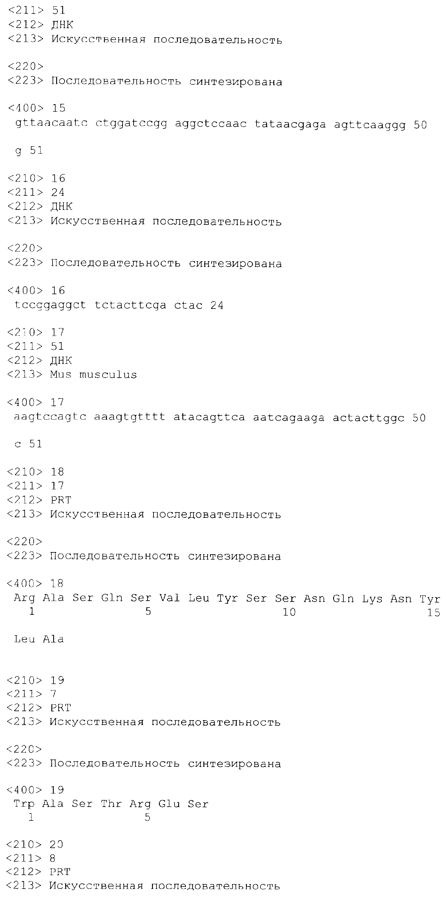 15. Гуманизированное антитело по любому из пп.1-13, содержащее остатки определяющего комплементарность участка (CDR) вариабельного домена легкой цепи (VL) RASQSVLYSSNQKNYLA (SEQ ID NO: 18); WASTRES (SEQ ID NO: 19) и HQYLSSDT (SEQ ID NO: 20).