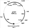 – EcoRI-BamHI – фрагмента плазмидной ДНК бифункционального бактериально-дрожжевого вектора pPIC9 размером 7,75 т.п.о., включающего бактериальный ген устойчивости к ампициллину, бактериальную область инициации репликации, ген HIS4 дрожжей; фрагмент 5′-некодирующей области дрожжевого гена АОХ1 размером 0, 95 т.п.о., содержащий область, обеспечивающую активацию транскрипции этого гена в присутствии метанола в качестве источника углерода в культуральной среде; фрагмент гена АОХ1 размером 0,33 т.п.о., содержащий область терминации транскрипции этого гена; фрагмент 3′-нетранслируемой области гена АОХ1 размером 0,76 т.п.о.;