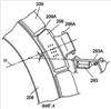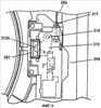 Кнопка 256 открывания двери расположена в вырезанной части 209А кольцеобразного обрамления 209 поворачивающейся двери. Открывающий/закрывающий исполнительный механизм 293 размещен на задней стороне кнопки 256 открывания двери, и он поворачивается во взаимосвязанном движении с осью движения кнопки 256 открывания двери.