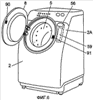 На фиг.6 показана стиральная машина, в которой дверной блок открывается путем нажатия на кнопку открывания 56. Дверной блок 8 снабжен защелкой 90, выполненной в виде выступа на внутренней его стороне. Имеется устройство блокировки 59, установленное сзади наклонной поверхности 2А корпуса 2. Имеется также щеколда с ловителем 91, обеспечивающая в дальнейшем открывание корпуса 2, при этом щеколда с ловителем образует часть устройства блокировки 59.