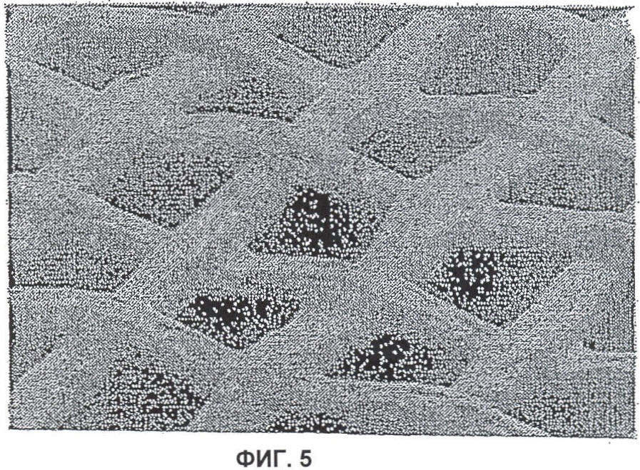 Верхний слой, нижний слой или оба эти слоя могут быть получены с использованием связующих нитей. На фиг.5 показан слой, контактирующий с листом, который получен из связующих нитей под действием тепла и/или давления. Согласно настоящему изобретению, в случае, если верхний и нижний слои состоят из указанных нитей и подвергаются воздействию тепла под давлением или без давления, они соединяются друг с другом и образуют ткань.