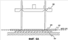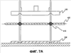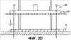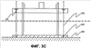 На фиг.3 проиллюстрирована забивка свай способом согласно настоящему изобретению. Буровую установку согласно настоящему изобретению вначале устанавливают на месте бурения (фиг.3А). Буровая установка содержит элементы свайной подсистемы 800 (включая манжеты и блокирующие устройства), а также сваи 700, как описано выше. Нижние концы свай расположены практически заподлицо с дном подушки.