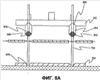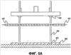 Для разрушения образующихся полос 420 льда подъемная система согласно настоящему изобретению опускает верхний корпус 100 до тех пор, пока нижняя поверхность верхнего корпуса не начнет оказывать усилие на полосы льда. Независимо от того, расположено ли ледокольное устройство 900 на нижней стороне верхнего корпуса (фиг.5) или на верхней поверхности подушки (фиг.6), масса и форма ледокольного устройства, масса верхнего корпуса и мощность подъемной системы обеспечивают достаточное усилие для разрушения льда 430 (фиг.5В и 6В; стрелки указывают направление перемещения подъемного корпуса).