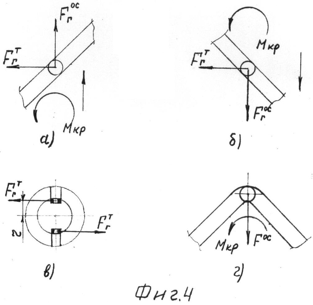 Согласно законам механики сила, действующая на наклонную поверхность (см. Фиг.4, вариант а и б), раскладывается на составляющие, одна из которых осевая, а другая тангенциальная .