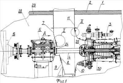 Установка между редуктором и газотурбинным двигателем входного устройства позволяет повысить надежность газотурбинного агрегата за счет исключения попадания на вход в двигатель посторонних предметов и организовать очистку поступающего в двигатель воздуха.