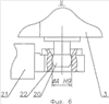 Параллельно с этим стенка переднего фланца (18) и кольцевые опоры (19) ТПК (3) «ложатся» на передний (6), средний (11) и задний (12) ложементы ПУ, соответственно. После чего на ложементы (11) и (12) устанавливают хомуты и задействуют гидропривод (24) замкового механизма (23), захваты которого фиксируют опорный элемент (26) носового обтекателя ракеты (4) относительно переднего фланца (18) ТПК (3).