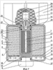 На фиг.1 представлен разрез авиационной бомбы объемного взрыва, показана бомба перед срабатыванием воспламенителя.