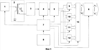 Для этого цифровые коды N1, N2, N3, N4 поочередно записываются в регистры 9-12. С выходов регистров 9-12 коды N1, N2, N3, N4 поступают на входы сумматора 13, где суммируются и подаются на вход регистра 6 данных. С помощью отбрасывания двух младших разрядов выходное число делится на четыре. Происходит их осреднение в течение одного периода напряжения питания трансформаторного датчика угла.