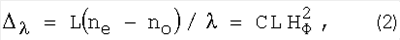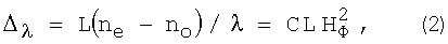 где  – разность хода лучей, выраженная в длинах волн, L – длина пути света в веществе ячейки, охваченном поперечным магнитным полем, определяемая апертурой диафрагмы 15, ne и no – показатели преломления материала магнитооптической ячейки на длине волны в вакууме необыкновенной и обыкновенной волн в излучении ОКГ 11, С – константа Коттона-Мутона, зависящая от свойств среды ячейки 6, длины волны излучения ОКГ 11 и температуры.