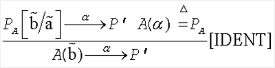 Мы допускаем, что Асинхронные действия моделируются как действия с отсутствием последовательного продолжения в CCS. Следовательно, асинхронные действия «порождаются», как в a | P, где a происходит асинхронно. Условное обозначение. Мы зписываем 3.2. Беступиковость, подготовленное отклонение и соответствие Если два процесса P и Q обмениваются данными через локальные имена в Определение 3. (Тупиковый процесс). Процесс P называется тупиковым на Определение 4. (Беступиковый процесс). Процесс P называется беступиковым на В ситуации, упомянутой выше, мы применяем определение 4 посредством поиска перехода Мы добиваемся отношения соответствия Допустим, Определение 5. (Непринятие).Если X является подмножеством L, мы говорим, что P осуществляет непринятие X тогда и только тогда, когда P является стабильным и Определение 6. (Готовность). Если Y (L(1), мы утверждаем, что P готов на Y тогда и только тогда, когда P стабилен и ((Y подразумевает Определение 7. (Подготовленное неприятие).Если X (L и Y (L(1), мы говорим, что P может осуществить непринятие X, хотя готов на Y, тогда и только тогда, когда P может осуществить неприятие X из состояния, которое готово на Y, то есть существует P’, такой что Заметим, что готовые множества определены в исчислении действий (определение 6), но непринятия определены в исчислении совместных действий (определение 5). Вначале это может быть несколько запутывающим. Например, процесс осуществляет непринятие {a} и является готовым на {a}. Определение 8. (Отношение соответствия).Бинарное отношение R на процессах называется отношением соответствия тогда и только тогда, когда всякий раз, когда P R Q, то сохраняются следующие условия: C1. Если C2. Если P может осуществить непринятие X, в то время как является готовым на Y, то Q может осуществить непринятие X, в то время как готов на Y. Условие [C2] в определении 8 может показаться неожиданным. Оно дополнительно мотивировано и обсуждено далее, включая раздел 3.3 и раздел 3.4. Если R1 и R2 являются бинарными отношениями на процессах, мы определяем их композицию, обозначаемую R1oR2 через: R1oR2={(P,Q)| Лемма 1. Допустим, что {R i}i 1. Отношение 2. Для любого i,j (I отношение R ioR j является отношением соответствия. 3. Отношение тождественности на процессах является отношением соответствия. Лемма 1.1 показывает, что мы можем определить (в качестве отношения наибольшего соответствия посредством применения объединения всех отношений соответствия на пути, который является стандартным для бисимуляции и симуляции [7] в CCS. Определение 9. (Соответствие Условие [С2] определения 8 гарантирует, что, если P (Q, то Q становится в тупик на имени a так же часто, как и P. В определении 8 очень важно, что ограничение готовности наложено только на одно имя за раз посредством того факта, что готовые множества Y являются не более чем одноэлементными множествами (в качестве специального случая выбор Y=0 дает результатом стандартное условие непринятий без ограничения готовности). Это предоставляет возможность спецификации быть более неопределенной в сравнении с ее детализациями, поскольку спецификация может решать ее неопределенность порознь для каждого имени. Например, мы имеем a+b (a#b. Рассмотренный через алфавит имен {a,b} процесс a+b осуществляет непринятие {a,b} и готов и на {a}, и на{b}. Процесс a#b осуществляет непринятие a|b ((a.b)#(b.a), (a.b)#(b.a) (a|b, a|b (a.b+b.a где мы записываем P (Q тогда и 