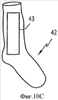 Фиг.10А-10С – вид в перспективе, иллюстрирующий способ изготовления носка, содержащего устройство в соответствии с настоящим изобретением.