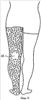Фиг.9 – вид в перспективе ног пациента с отпечатком устройства в виде повязки вокруг одной из ног после удаления устройства.