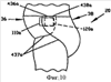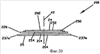 На фиг.19 разделительный накрывающий лист 276 термопластичного слоя показан перекрывающим слой 275 термопластичного материала. Альтернативно, разделительный накрывающий лист 276 термопластичного слоя можно опустить. В качестве другой альтернативы, два накапливающих компонента поглощающей сердцевины, каждый наподобие того, что показан на фиг.19, за исключением опущенного накрывающего листа 276 термопластичного слоя, могут быть проложены накапливающим компонентом поглощающей сердцевины, перевернутым так, что соответствующие слои подложки в наибольшем удалении противолежат друг другу. В таком сочетании накапливающих компонентов поглощающей сердцевины любой или оба из противолежащих в наибольшем удалении листов подложки могут служить, соответственно, как любой или оба из верхнего накрывающего листа нижнего накрывающего листа для поглощающего комплекта. Альтернативно, поглощающий комплект может включать в себя отдельный нижний накрывающий лист и (или) отдельный верхний накрывающий лист.