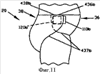 Фиг.10 и фиг.11 представляют собой упрощенные виды слева и справа примерного подгузника 20, включающего в себя липкие склейки, носимые на нижней части туловища носящего подгузник человека.