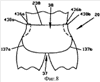 Когда такой дополнительный нижний лист прикреплен изнутри к поглощающему комплекту между нижним накрывающим листом и поглощающей сердцевиной, этот дополнительный нижний лист может прикрепляться к нижнему накрывающему листу крестообразным узором прикрепления, аналогичным тому, что показан на фиг.16, тем самым оставляя части нижнего накрывающего листа, которые лежат вне крестообразного узора прикрепления, неограниченными прикреплением дополнительного нижнего листа и позволяя этим частям быть растяжимыми. Например, проходящая в поперечном направлении часть 214 такого крестообразного узора прикрепления показана на фиг.20.
