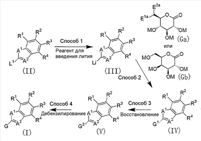 Кроме того, известно, что SGLT1, натрийзависимый переносчик глюкозы 1, находится в тонкой кишке, которая контролирует поглощение углеводов. Также сообщается, что недостаточность поглощения глюкозы и галактозы возникает у больных с дисфункцией вследствие наследственных отклонений от нормы SGLT1 человека (см., например, приведенные ниже ссылки 8-10). Кроме того, подтверждено, что SGLT1 вовлечен в поглощение глюкозы и галактозы (см., например, приведенные ниже ссылки 11 и 12). Более того, подтверждено, что у OLETF крыс с индуцированными стрептозотоцином диабетическими симптомами растет количество мРНК и белка SGLT1 и поглощение глюкозы ускоряется (см., например, приведенные ниже ссылки 13 и 14). Обычно у больных диабетом усвоение и поглощение углеводов повышаются. Например, подтверждено, что в тонкой кишке человека количество мРНК и белка SGLT1 сильно повышено (см., например, приведенную ниже ссылку 15). Следовательно, блокирование активности SGLT1 человека ингибирует поглощение углеводов, таких как глюкоза, в тонкой кишке и может предупреждать повышение уровня глюкозы в крови. Особенно считается, что замедление поглощения глюкозы на основе описанного выше механизма эффективно для нормализации гипергликемии, возникающей после приема пищи.