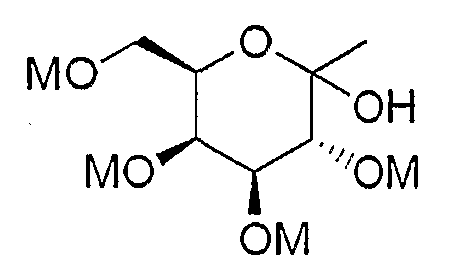 1H-ЯМР (CDCl3) (м.д.: 2,28 (3H, с), 3,55-3,70 (2H, м), 3,75-3,85 (4H, м), 4,09 (1H, д, J=10,5 Гц), 4,15-4,20 (2H, м), 4,52 (1H, д, J=10,4 Гц), 4,56-4,62 (2H, м), 4,62-4,72 (2H, м), 6,90-7,00 (2H, м), 7,00-7,40 (25H, м), 7,55-7,65 (1H, м).