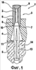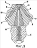 Фиг.3 – осевой разрез предложенного крепежного устройства для изоляционного материала с зоной расплющивания в положении удержания после установки в пластину изоляционного материала.