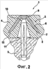 Фиг.2 – разрез крепежного устройства для изоляционного материала согласно фиг.1 в положении удержания после установки в пластине изоляционного материала.