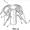 На фиг.4 показан вариант выполнения предложенного согласно изобретению крепежного устройства 1 для изоляционного материала, при котором на заднем конце крепежного стержня 2 крепежного устройства 1 для изоляционного материала расположены со смещением на 90° относительно друг друга четыре опорных элемента 6. Опорные элементы 6 отформованы на крепежном стержне 2 и жестко соединены с крепежным стержнем 2. Опорные элементы 6 имеют на своих свободных концах острия 7 для врезания в не показанную пластину изоляционного материала. Опорные элементы 6 крепежного устройства 1 для изоляционного материала выполнены упругими на изгиб и изогнутыми в направлении свободного конца крепежного стержня 2, причем острия 7 обращены в стороны и наружу. Опорные элементы 6 могут отклоняться наружу путем изгиба опорных элементов 6. Острия 7 опорных элементов 6 через предохранительные элементы, выполненные в виде волнообразных предохранительных укосин 9, соединены с крепежным стержнем 2. При отклонении опорных элементов 6 в положение удержания предохранительные укосины 9 распрямляются и препятствуют отклонению опорных элементов 6 за положение удержания. Отклонение опорных элементов 6 осуществляется подобным образом, что и при описанных выше примерах выполнения.