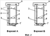 На фиг.1 показан вид сверху участка стены после опалубки; на фиг.2 – варианты установки облицовочной арматуры, вариант А – облицовочная панель уложена из мелкого облицовочного материала, вариант Б – облицовочная панель изготовлена с вмонтированной или влитой в нее арматурой; на фиг 3 – размещение упоров при заливке опалубки бетоном.