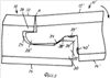 Как показано на чертеже, стопор 32 расположен в верхней части нижнего выступа 30, выступая за верхний выступ 28 и, следовательно, за пределами паза 24. Канал 36, с другой стороны, обращен вниз и расположен за пределами шпунта 26. Стопор 30 (должно быть стопор 32) и канал 36 устроены таким образом, что при соединении (Фиг.3) первая и вторая заклинивающие поверхности 34 и 36 (должно быть 38) образуют стык, который обездвиживает соединенные панели в поперечном направлении и в направлении, параллельном плоскости укладки. Для обеспечения эффективного заклинивания две заклинивающие поверхности планарны и преимущественно расположены в одной и той же плоскости, которая образует угол (называемый углом заклинивания) с плоскостью укладки (нижняя поверхность 14 панели 10). Этот угол имеет величину порядка 35-70°.