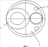 На фиг.1 представлена эксцентричная направляющая (вид сверху), на фиг.2 – эксцентричная направляющая в сборе с дополнительным патрубком и зажимом, на фиг.3 – установка в сборе в скважине.