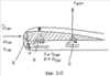 Тг – температура основного газового потока на входе в межлопаточное пространство, P – давление в окрестности проницаемой вставки, Т – температура выдуваемого через вставки газа, Fдоп – дополнительная поперечная сила, возникающая при выдуве низкотемпературного газа через вставки. На фиг.3-б показано поперечное сечение рабочей лопатки с каналами в корпусе для подвода низкотемпературного газа к проницаемым вставками на вогнутой поверхности и последующего его выдува, где Vг – вектор скорости основного газового потока на входе в межлопаточное пространство, Pг – давление основного газового потока на входе в межлопаточное пространство, Тг – температура основного газового потока на входе в межлопаточное пространство, P – давление в окрестности проницаемой вставки, Т – температура выдуваемого через вставки газа, Fдоп – дополнительная поперечная сила, возникающая при выдуве низкотемпературного газа через вставки.
