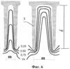 На фиг.6 схематично представлены изолинии скорости потока в межреберных каналах в зависимости от их ширины.