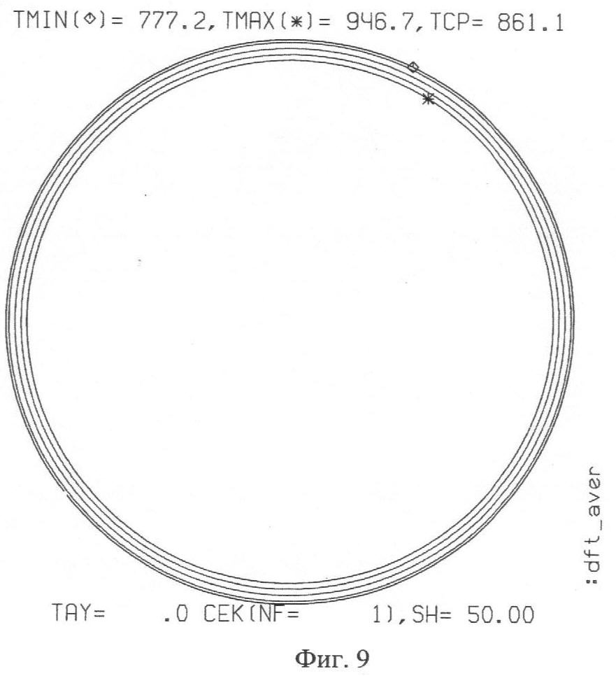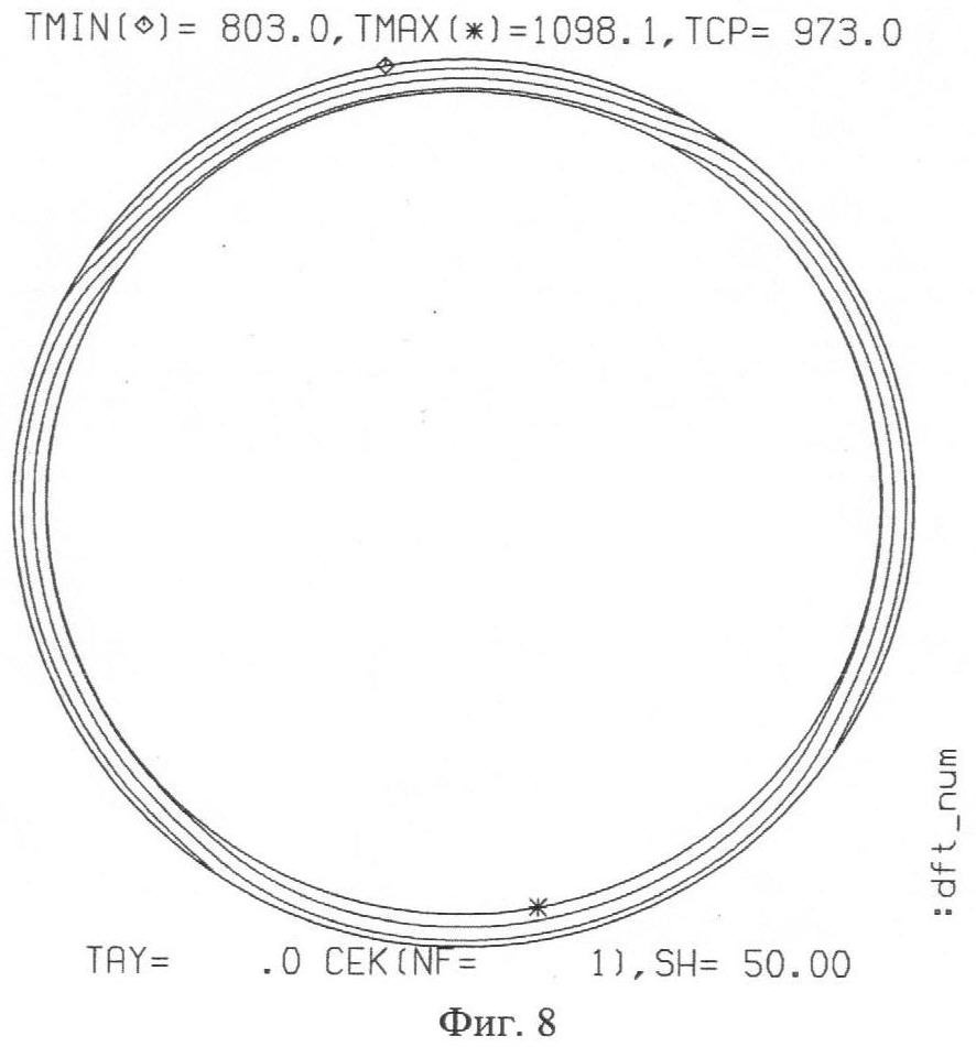 На фиг.7 представлены расчетные температурные поля поперечных сечений неподвижного цилиндра по его длине.