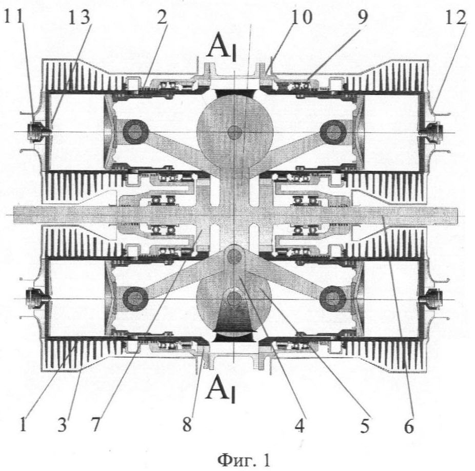 На фиг.2 представлено сечение по А-А двухтактного двигателя фиг.1.