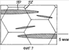 Фиг.1 представляет собой идеализированную микроструктуру изделия 20, содержащего микрокомпозит 21, образованный поликристаллической матрицей 22 на основе титана, содержащей в себе дисперсию мелких пластинчатых внутризеренных частиц 24 борида титана и расположенных по границам зерен частиц 25 борида титана. Необязательно, имеются также оксидные частицы 26, диспергированные в матрице 22. На Фиг.1 оксидные частицы 26 изображены имеющими меньший размер, чем частицы 24 и 25 борида титана. Однако оксидные частицы 26 могут иметь размер, сравнимый с частицами 24 и 25 борида титана, либо могут быть большими по размеру, чем эти частицы 24 и 25 борида титана. (Эта идеализированная микроструктура, показанная на Фиг.1, не отражает относительные размеры или объемные доли компонентов.)