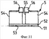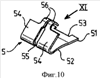 Упругая пластина 5, показанная на фигурах 10-12, состоит из нижней поверхности 51 и наклонной поверхности, разделенной на две части 54 разрезом 55.