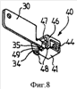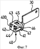 Упругая пластина 5 расположена в клетке 40 своей нижней поверхностью 51 на нижней поверхности 41 клетки со своей наклонной поверхности в виде двух частей 54 повернутых к передней поверхности 42 клетки 40. Указанная упругая пластина 5 удерживается в нужном положении в клетке 40 взаимодействием выреза 53 на своей нижней поверхности 51 с ушком 49 клетки 40.