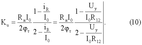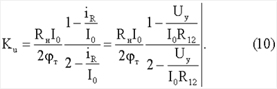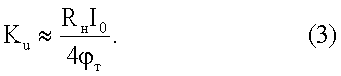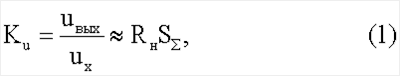 Коэффициент усиления по напряжению Ku для дифференциального выхода определяется формулой