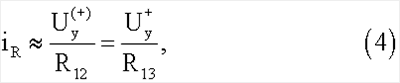 В этом режиме токи iR, обусловленные изменением Uy, передаются в противофазе к узлу 3 по двум каналам – через транзисторы 1-2 и транзистор 10. Как следствие, это вызывает уменьшение только тока эмиттеров транзисторов 1 и 2 на величину iR, что приводит к уменьшению коэффициента усиления по напряжению из-за уменьшения первой составляющей крутизны S (2), обусловленной сопротивлениями rэ1=rэ2: