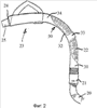 Для поддающейся удлинению шланговой части 22 предусмотрено опорное средство, указанное общим ссылочным номером 30. Оно выполнено из литого гибкого полимерного материала, например полипропилена, длина которого соответствует длине второй шланговой части, которая расположена вне рукоятки 23, когда шланговая часть сжата (сокращена). Опорное средство 30 имеет конец 31, который охватывает вторую шланговую часть в непосредственной близости от его соединения 21 с первой шланговой частью 20 и который крепит опорное средство ко второй шланговой части. Опорное средство дополнительно содержит стеновую часть 32, которая проходит вдоль второй шланговой части 22, и образования 33, 34, которые проходят в окружном направлении, по меньшей мере, частично вокруг соответствующих частей поддающейся удлинению шланговой части. Эти образования обеспечивают возможность удлинения и сокращения шланговой части с помощью образований. Перед образованием 34 опорное средство 30 имеет образование 35, посредством которого оно может быть разъемно соединено с рукояткой 29, например, посредством разъемного зажима.
