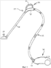 Рукояточный узел указан общим ссылочным номером 45 и содержит корпусную часть 46, которая имеет криволинейную и трубчатую конфигурацию, образующую внутреннюю трубчатую камеру 47, способную вмещать вторую шланговую часть 41, когда она находится в своей сокращенной конфигурации. На своем переднем конце корпусная часть 46 рукоятки имеет входную втулку 48 для сцепления с жестким переходником или инструментом для очистки, как описано выше, а на переднем конце камеры 47, смежном втулке 48, имеется внутренний фланец 49, с которым сцепляется манжета 44 на переднем конце шланговой части 41, когда шланговая часть 41 полностью размещена в камере 47. На противоположном заднем конце корпусной части 46 рукоятки корпус имеет образования для байонетного сцепления посредством выступов 43 на соединителе 42, причем это сцепление показано ссылочным номером 50 на фиг.5 сопроводительных чертежей. Вместо байонетного сцепления могут быть использованы другие типы сцепления. Свободный конец корпусной части 46 за сцепляющим образованием расширен в направлении наружу, как указано ссылочным номером 51, для обеспечения гладкой поверхности для контактного взаимодействия со шланговой частью 41, когда ее развертывают для использования, как описано ниже. Также смежно этому концу корпусной части 46 имеется удерживающий зажим 52, который поддается сцеплению с манжетой на свободном конце шланговой части 41 для удерживания ее в корпусной части 46, но которым можно воспользоваться для отсоединения манжеты 44 с целью полного освобождения шланговой части 41 из рукояточного узла 45.
