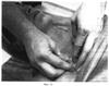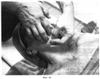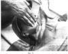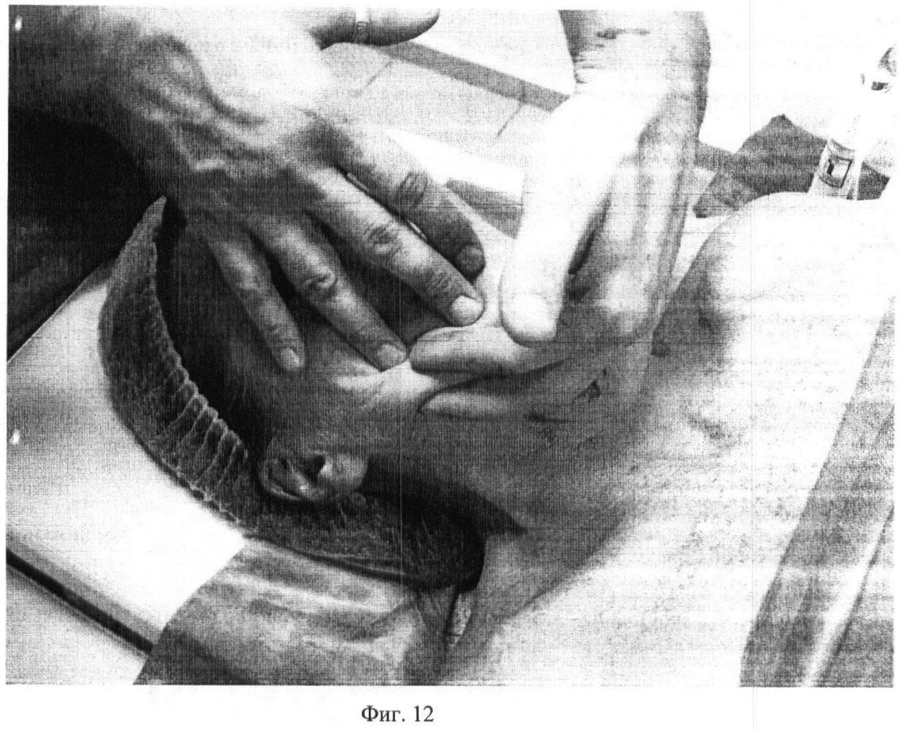Девятый этап. Фиг.11-12. Захватив между вторым и третьим пальцами валик из массируемой ткани, выполняют интенсивное сотрясение на depressor anquli oris, m. depressor labii inferioris, m. mentalis и m. masseter в течение 15 секунд.