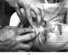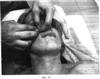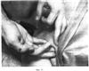 Двадцать четвертый этап. Фиг.40. Захватив кожную складку на palpebra superior с латеральной стороны вторыми пальцами обеих рук, сдвигают ее в медиальную сторону одним движением, по 4 раза с каждой стороны.