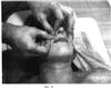 Четвертый этап. Фиг.5. Первым пальцем левой руки выполняют медленные накатывающие движения на второй, третий и четвертый пальцы правой руки, 10 секунд.