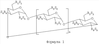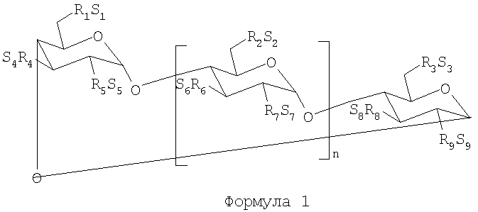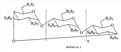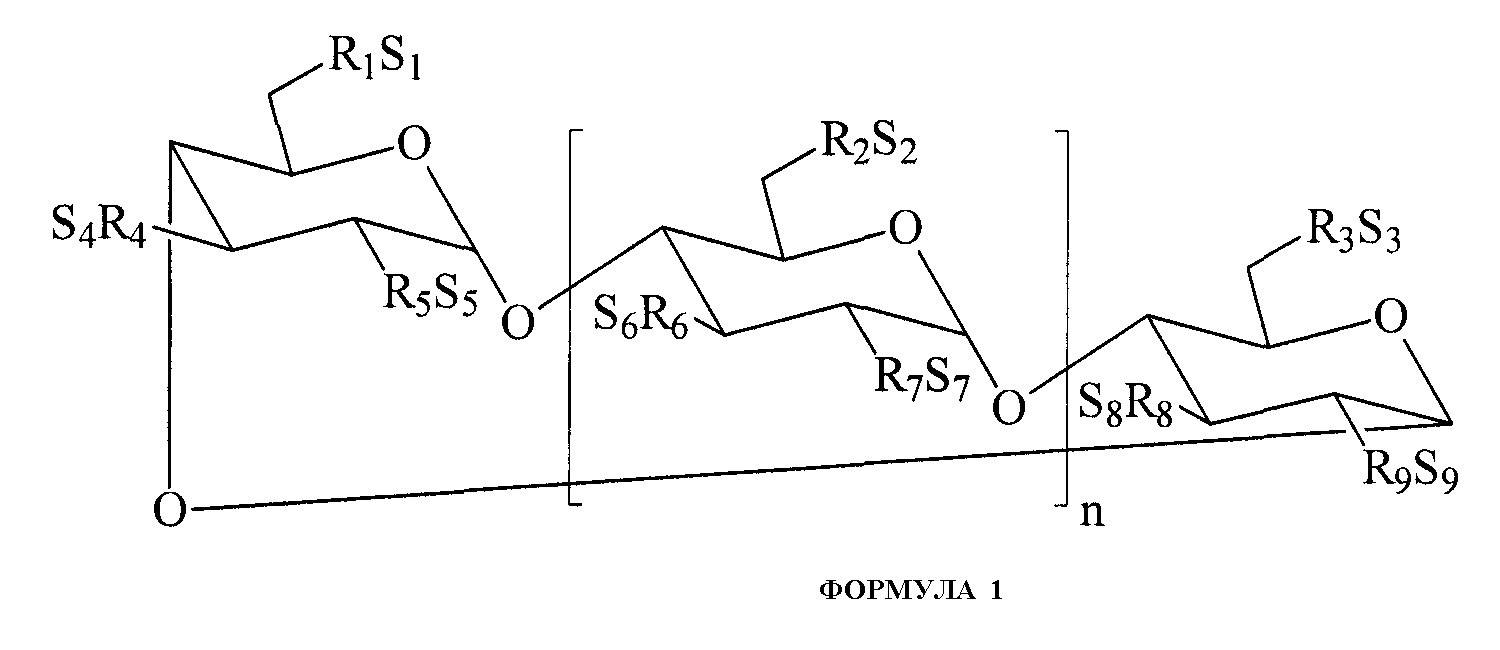 где n означает 5; R1, R2, R3, R4, R5, R6, R7, R8 и R9 независимо означают -О- или группу -O(С2-С6алкилен)-SO3 –, причем по меньшей мере один из элементов R1-R9 независимо означает группу -O-(С2-С6алкилен)-SO3 –, группу -O-(CH2)mSO3 –, где m равно 2-6, -OCH2CH2CH2SO3 – или -OCH2CH2CH2CH2SO3 –; и S1, S2, S3, S4, S5, S6, S7, S8 и S9 независимо означают фармацевтически приемлемый катион.