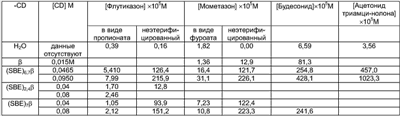 Сравнительная оценка разных форм SAE-CD при растворении производных кортикостероидов.