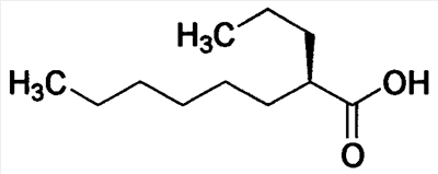 (2R)-2-Пропилоктановая кислота, используемая в настоящем изобретении, является соединением, представленным формулой (I):