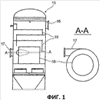 Как представлено на фиг.1, головная часть (15) регенерационной колонны того типа, о котором здесь идет речь, имеет устройство (17) подвода, предназначенное для нагруженной газом абсорбционной жидкости. Это устройство подвода выходит в галерею (18), на которой и происходит первое большое снятие давления с жидкости, в процессе которого и высвобождаются большие количества газа. Над галереей предусмотрены встроенные узлы (19). Высвободившиеся газы покидают колонну через выходное устройство (16), предусмотренное в колонне. Показанное на фиг.1 устройство (17) подвода тангенциально входит в колонну, что четко показано на разрезе А-А. Это тангенциальное устройство подвода обеспечивает мягкий, без завихрений перепуск потока в колонну и равномерное высвобождение газовой нагрузки, поэтому не возникает быстро меняющихся и/или ассиметричных импульсных усилий, которые со временем могли бы привести к повреждению колонны или ее встроенных узлов вследствие действия знакопеременной нагрузки. Поэтому тангенциальное исполнение устройства подвода, в частности в случае устройства подвода с мгновенным выделением газа, является предпочтительным, и можно даже сказать, обязательным.