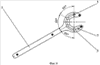 На второй головке 4 выполнены также отверстия 10 для размещения пальцев 8, закрепленных на этой рукояти 2. Отверстия 10 и косые пазы 9 выполнены чередующимися друг с другом, то есть каждое отверстие (за исключением крайнего) находится между двумя косыми пазами, а каждый косой паз (за исключением крайнего) находится между двумя отверстиями 10.