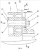 В том же заднем поясе в непосредственной близости к пилону 2 в соединении ребер кронштейна 6 и размещенного между ними кронштейна 7, с кольцевым зазором Н относительно последнего, введен резервный болт 25 (см. сечение К-К, Фиг.7 и 9).