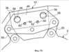 В связи с этим предпочтительно, чтобы каждая из упомянутых выше двух групп первичных отверстий 56, 58 была связана с группой вторичных отверстий 60, 62, выполненных соответственно в основной части 46 и ребре 36, каждая группа вторичных отверстий выполнена так, чтобы содержать надежный срезной штифт (не показан). При установке каждого надежного срезного штифта в первое вторичное отверстие 60 и второе вторичное отверстие 62 остается зазор по радиусу, так что при нормальных условиях по нему не передается никакой нагрузки, однако указанный штифт способен обеспечить передачу нагрузки в случае разрушения основного срезного штифта.