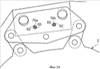 Также крепление 6 дополнительно содержит два срезных штифта (не показаны на фиг.3), которые также называются активными срезными штифтами и которые расположены симметрично относительно плоскости Р, указанные штифты также предпочтительно ориентированы в направлении X. Каждый срезной штифт проходит через первое первичное отверстие 56, выполненное в основной части 46, и второе первичное отверстие 58, которое выполнено в ребре 36 по одной оси с отверстием 56 в направлении X.