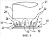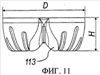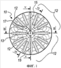 На продольном сечении основания 10, показанном на фиг. 3, буквой С обозначено максимальное расстояние между точкой 26 внешней окружности дна 11 и касательной 27 к верхнему профилю первого ребра 14 под прямыми углами к касательной 27, а буквой Е обозначено максимальное расстояние между линией 28, соединяющей точку 29 соединения между основанием 10 корпуса 25 (который в данном случае является цилиндрическим) с центром 17, и прямой линией, которая параллельна линии 28 и является касательной к первому ребру 14, под прямыми углами к линии 28.